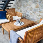 The kitchen amenities at Cozy House Claudia Villa feature an electric kettle, a fridge, and kitchenware, provided in an outdoor dining area. The nearest bus stop, Zirovnica, is just a 5-minute stroll away.